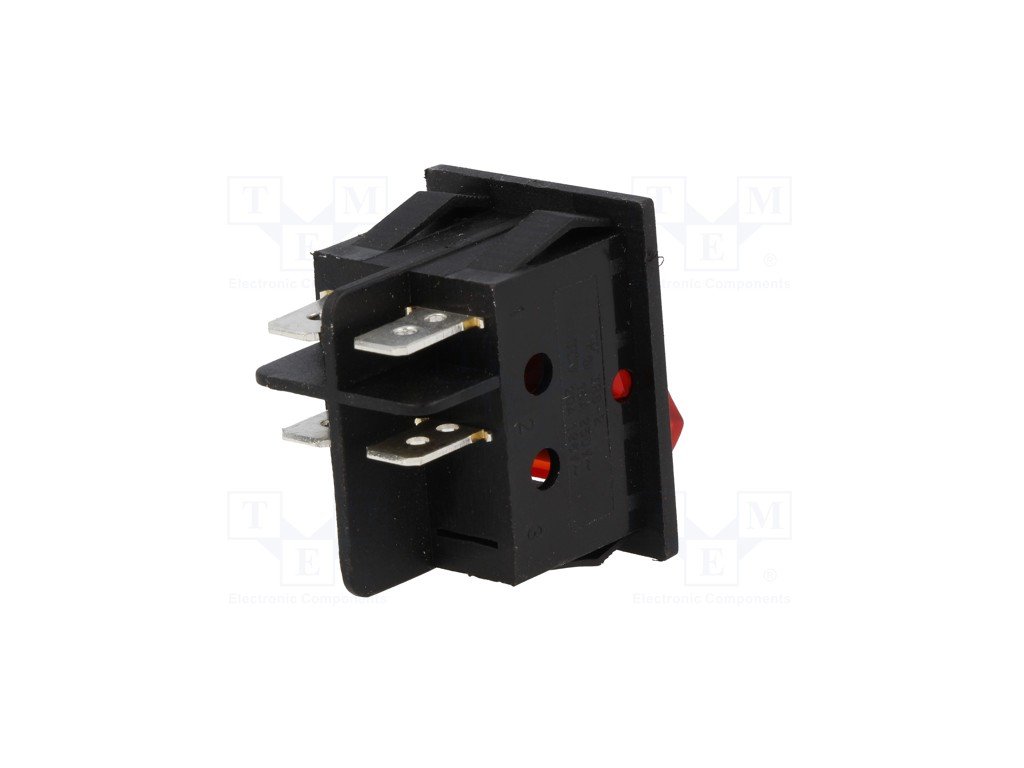 ROCKER; DPST; pol: 2; OFF-ON; 15A/250VAC; červená